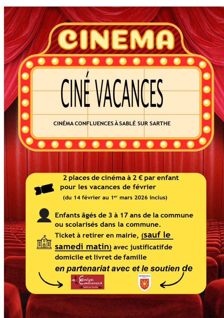 Pour être éligible : avoir entre 3 et 17 ans; habiter la commune ou être scolarisé à Saint Denis d’Anjou.
